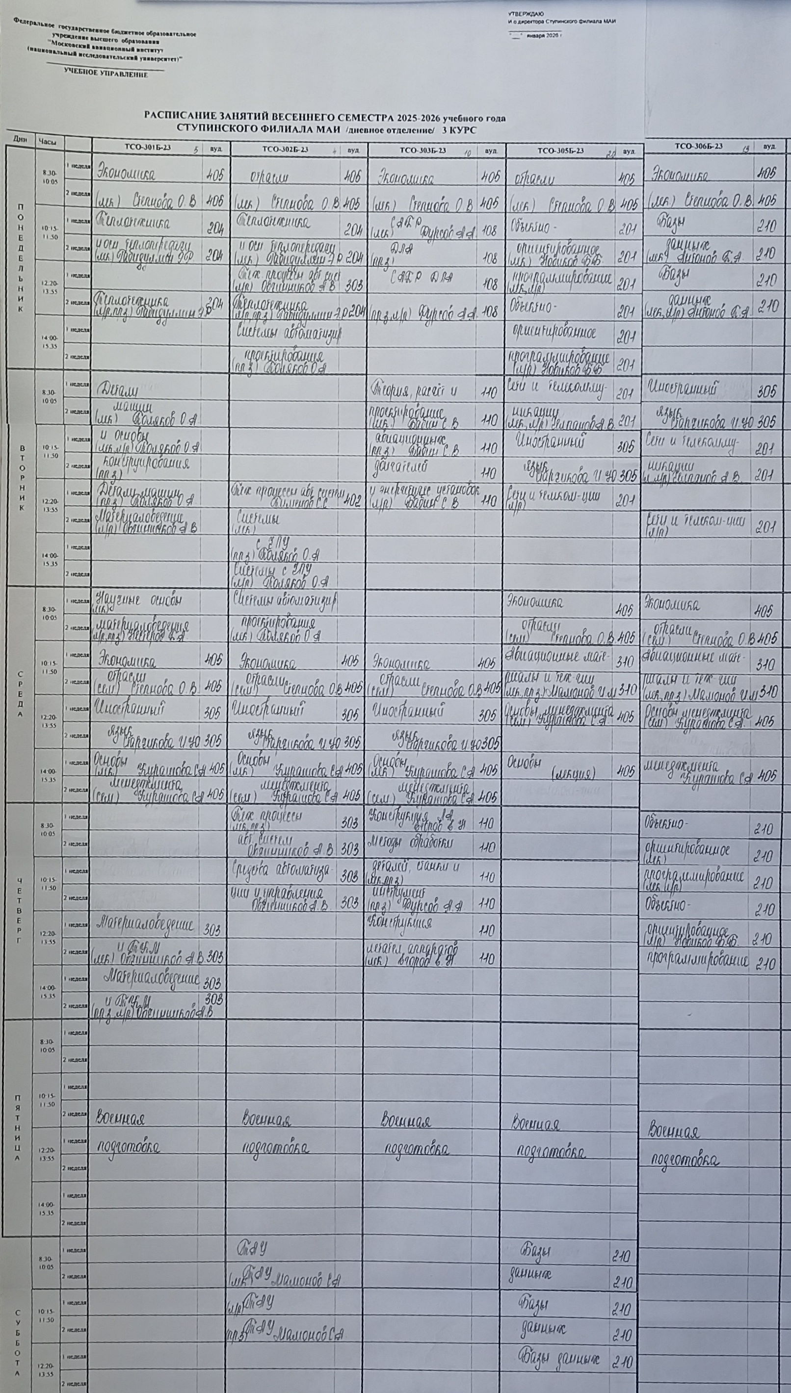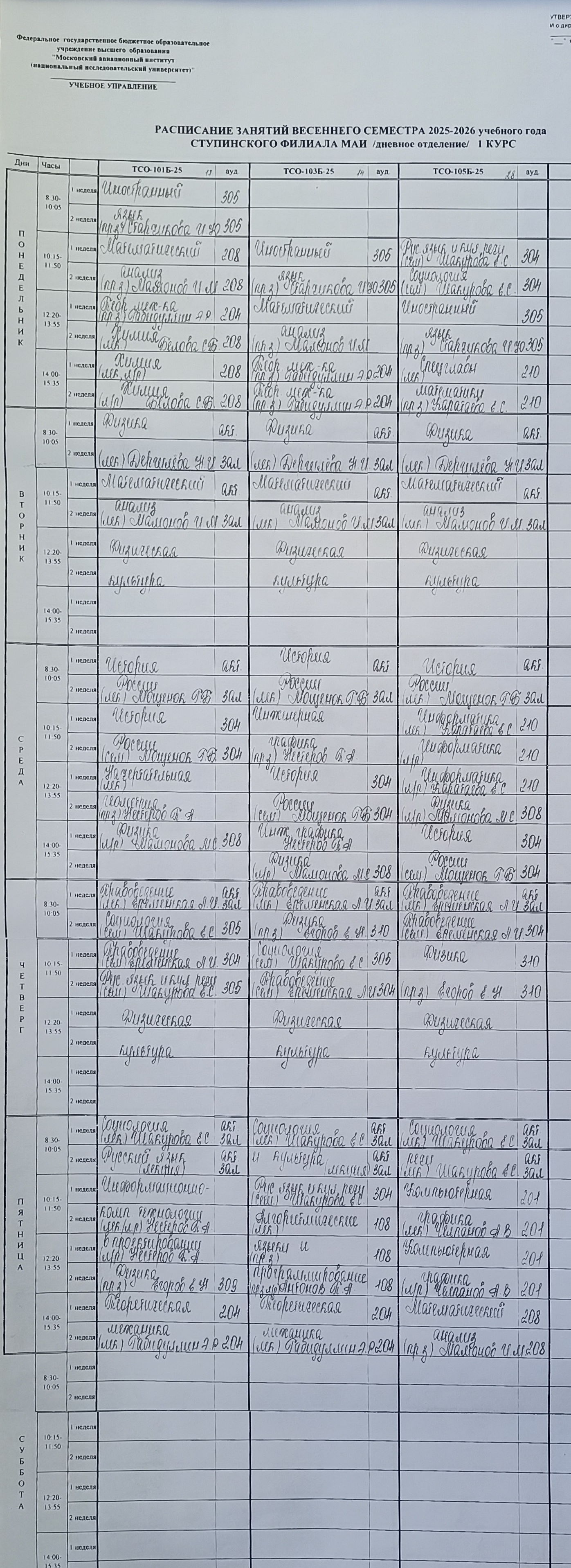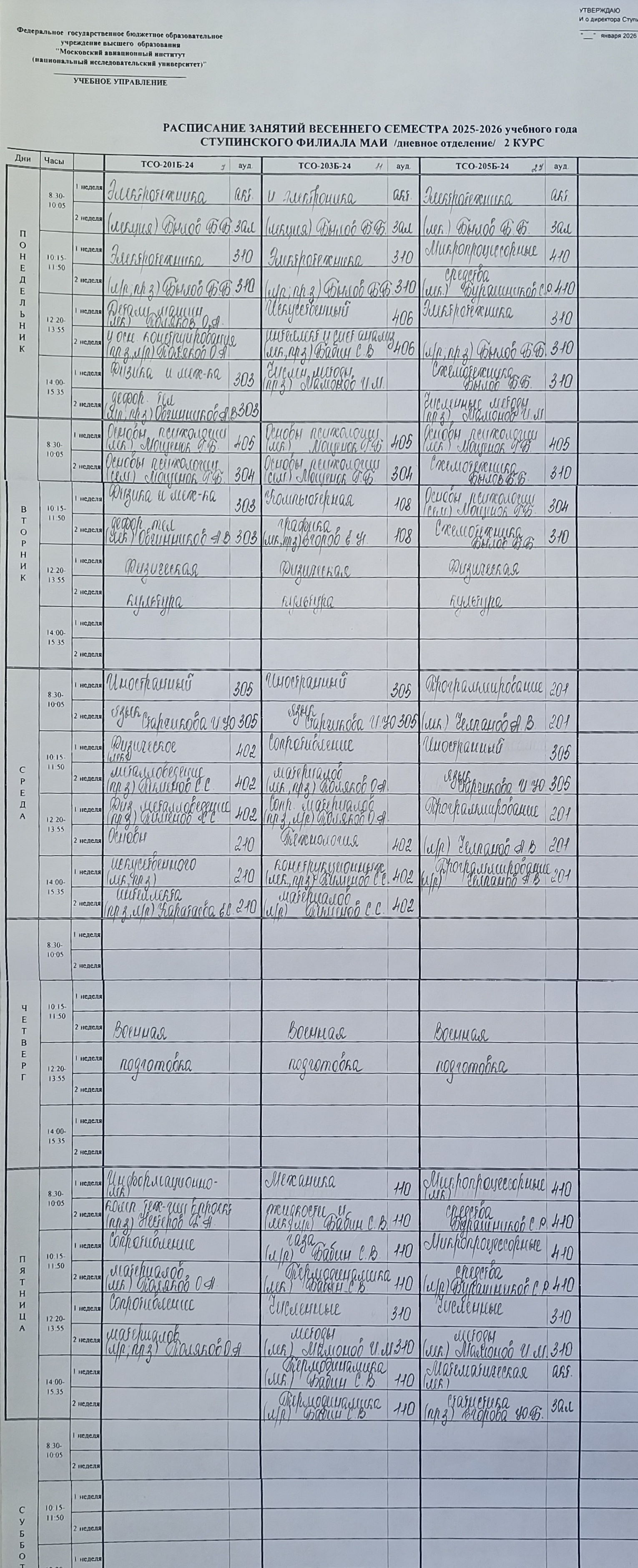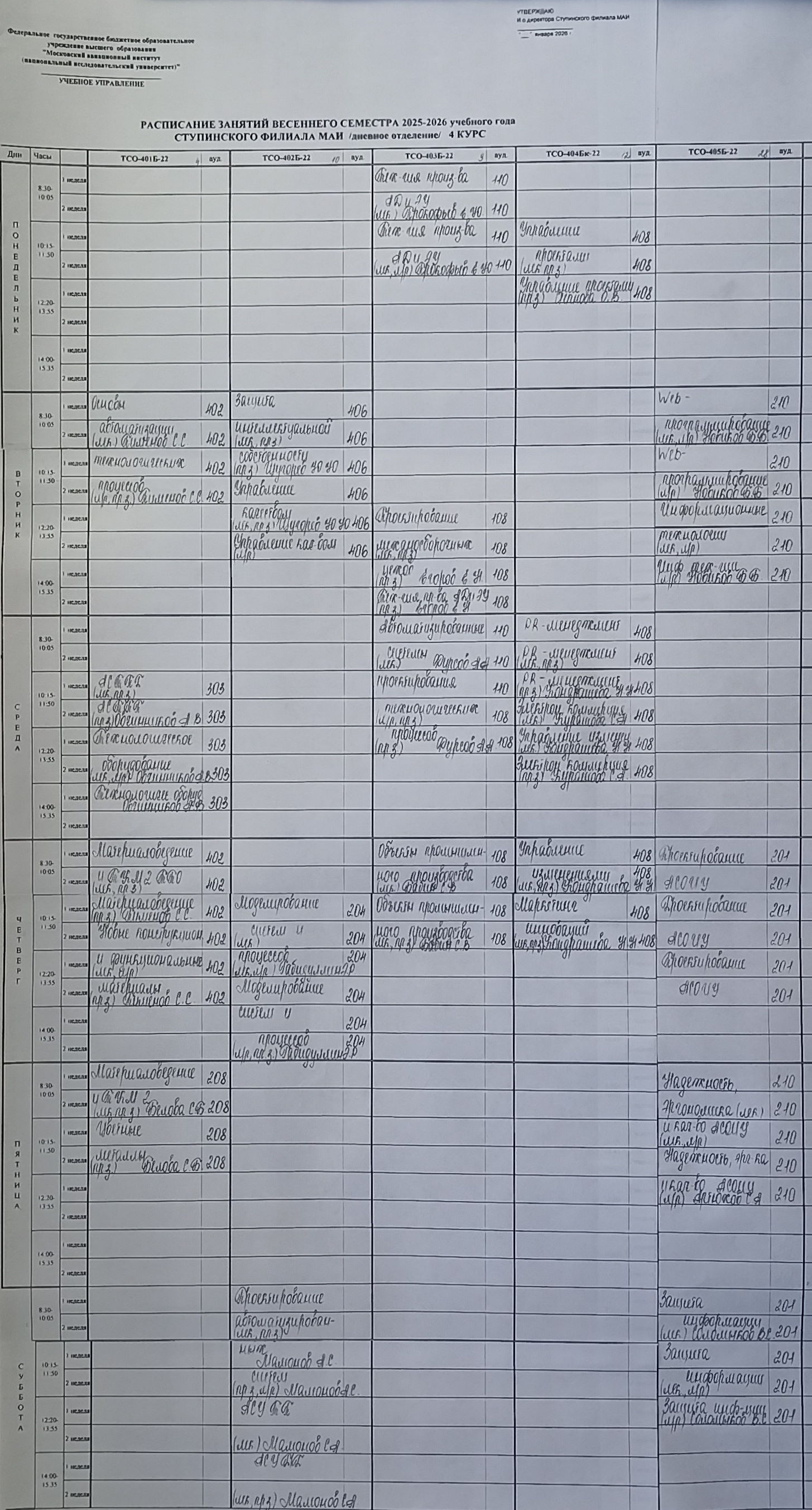 Полное расписание очное: